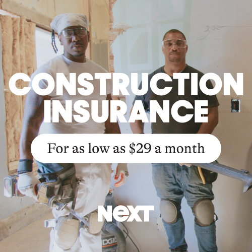 Experience comprehensive construction insurance designed to meet the unique needs of your trade. NEXT Insurance offers tailored coverage options including General Liability, Worker’s Compensation, Equipment Protection, and more.